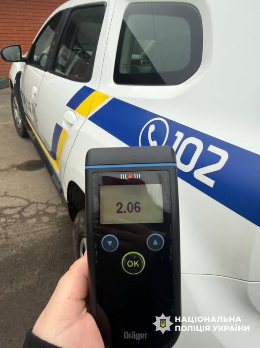 На місці події, у встановленому законом порядку, поліцейські провели тест стану правопорушника за допомогою приладу Drager. Апарат показав, що вміст алкоголю в крові чоловіка сягав 2,06 проміле, що більше ніж у 10 разів перевищує за гранично допустиму межу (0,2 проміле).