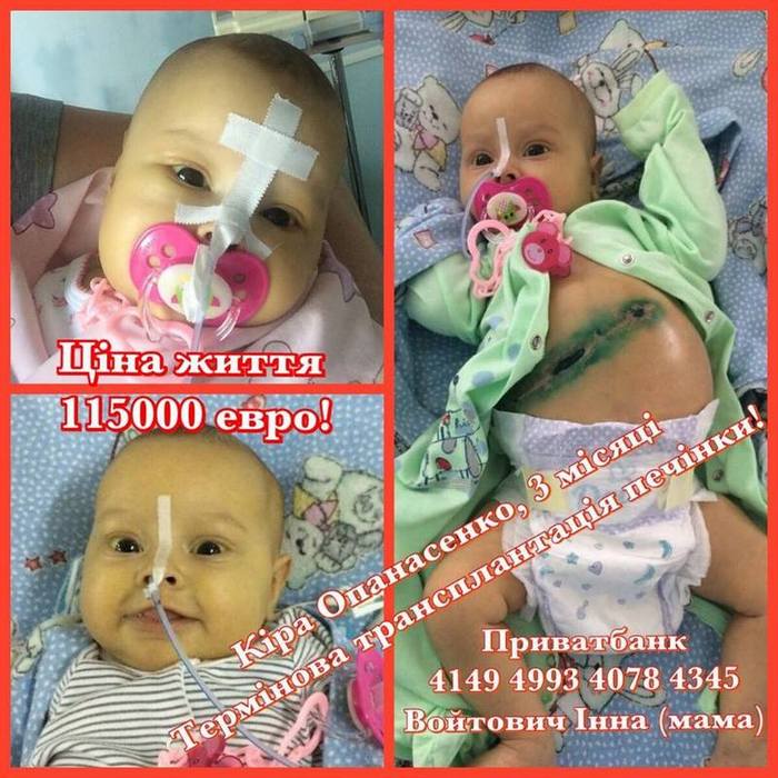 Лікарі наполягають, як найшвидше провести трансплантацію печінки. В Україні таких маленьких діток не оперують!!! Вага Кіри трошки більше 4-х кг.