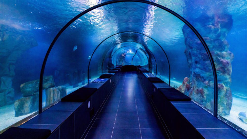 Головна родзинка комплексу — скляний тунель довжиною 48 метрів, через який відвідувачі проходять, ніби опинившись у самому центрі океану. Прозорі стіни створюють ефект повного занурення: риби пливуть просто над головою, а світло грає на хвилях, наче у справжніх морських глибинах.