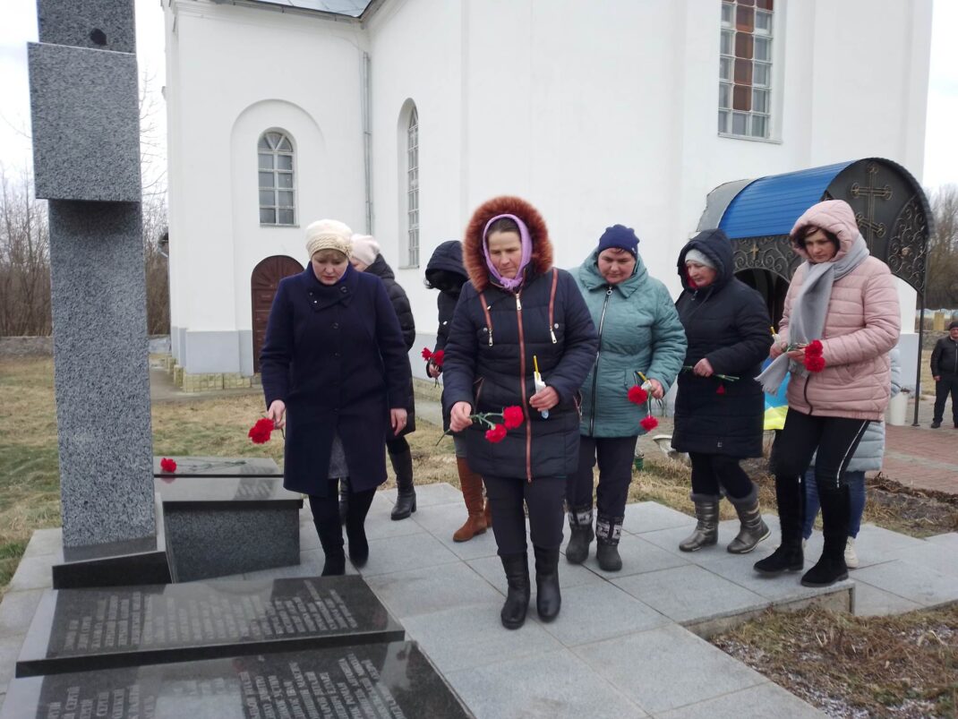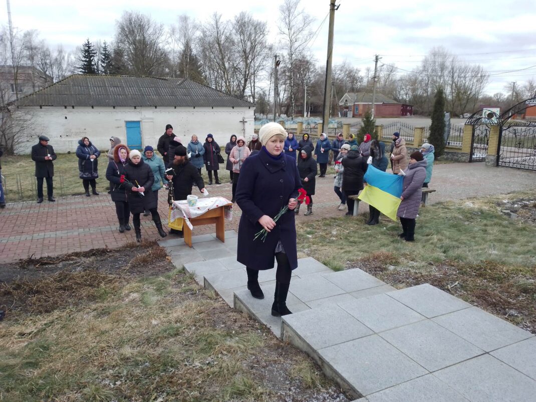 Зібравшись у центрі села біля пам’ятника Героям Небесної Сотні преставники громадськості, колективів сільської ради, місцевого навчально-виховного закладу й ряду інших організацій та підприємств у загальнонаціональній хвилині мовчання схилили голови в пам’ять про воїнів та мирних жителів українських міст і сіл, що загинули у боротьбі проти російських загарбників та чиї життя обірвали бомбові та авіаційні удари, якими ось вже рік поливають нашу країнську землю наші недосусіди.