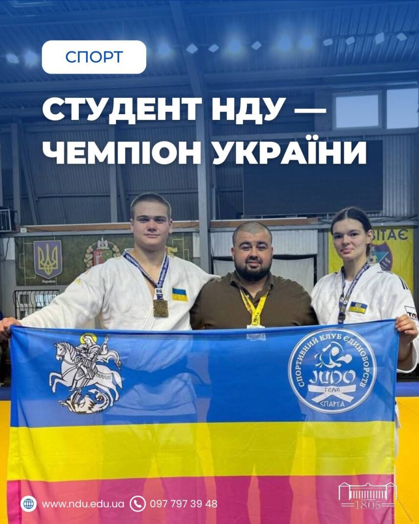 Студент Ніжинського державного університету імені Миколи Гоголя Іван Гармаш здобув золоту медаль на Чемпіонаті України з дзюдо серед спортсменів до 21 року у ваговій категорії до 100 кг .