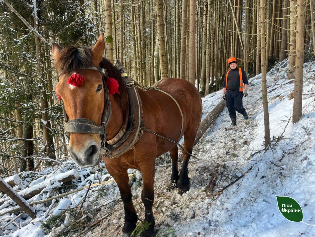 У гірських районах Українських Карпат і сьогодні застосовують один із найдавніших способів лісозаготівлі – кінне трелювання деревини. Попри розвиток сучасної техніки, цей метод залишається актуальним у важкодоступних місцевостях, де складний рельєф не дозволяє ефективно працювати великогабаритним машинам.