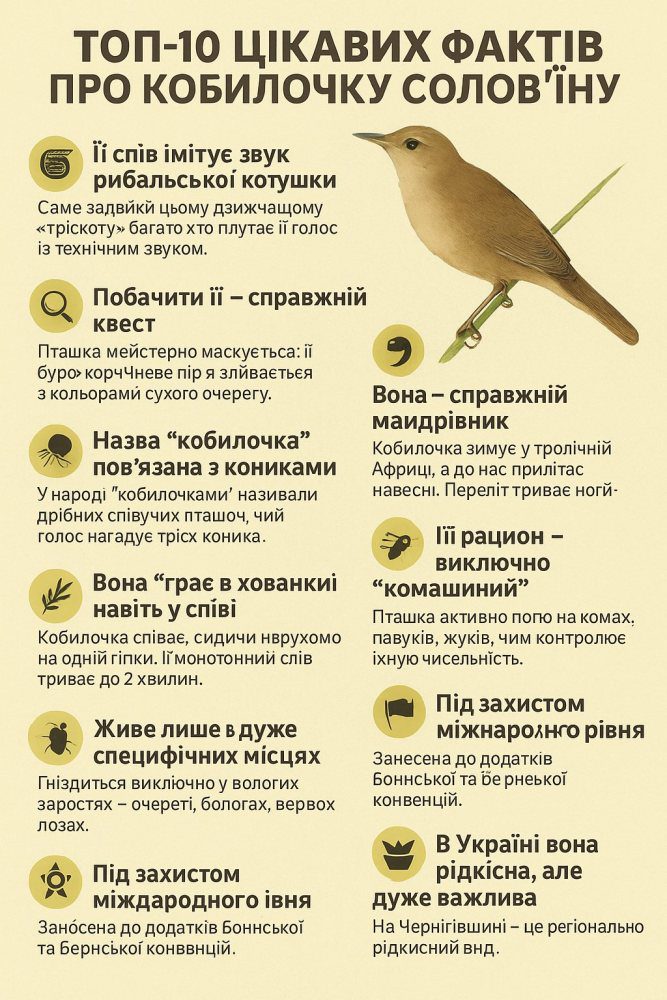 На Чернігівщині гніздиться рідкісний співун із довгими ногами та незвичною назвою — кобилочка солов’їна.