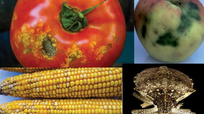 • Плодові дерева: знебарвлені, деформовані плоди, некротичні плями.