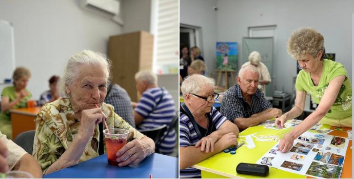 Після цього настав час творчості. У техніці колажу кожен учасник створив свою особисту історію літа: з подорожами, щасливими митями, сонцем, людьми поруч і спогадами, які гріють серце. Це була не просто арт-вправа — це був спосіб зупинитись, подякувати собі та зберегти щось важливе. Це заняття стало справжньою подорожжю: в уяву, у спогади, до себе. Воно дало змогу бути в моменті, відчути радість і зробити крок до внутрішньої стійкості.