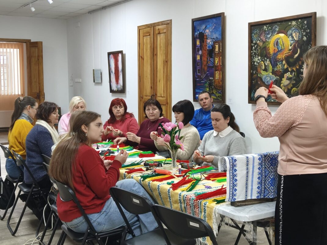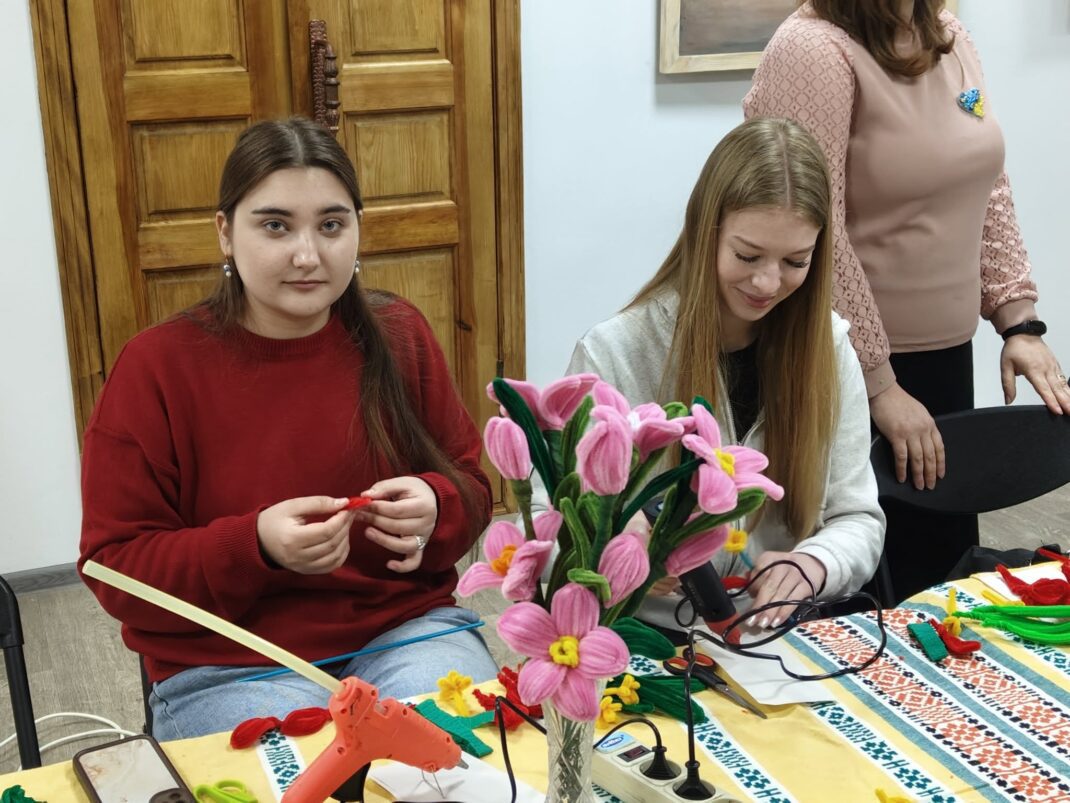Практична частина заходу стала простором для творчості та фантазії. Учасники власноруч виготовляли квіти із синельного дроту, експериментуючи з формами та кольорами, поєднуючи традиційні мотиви із сучасним баченням.