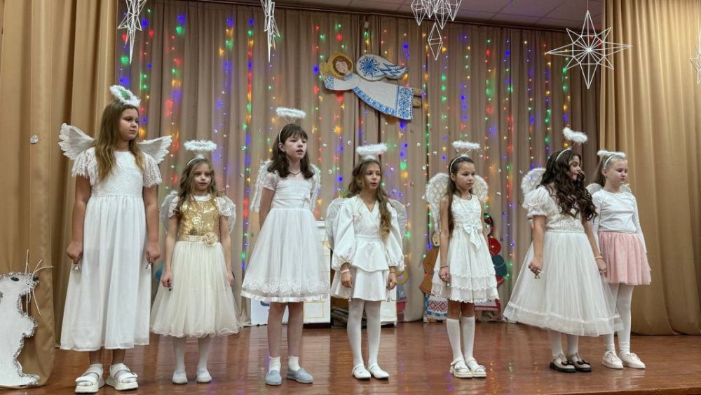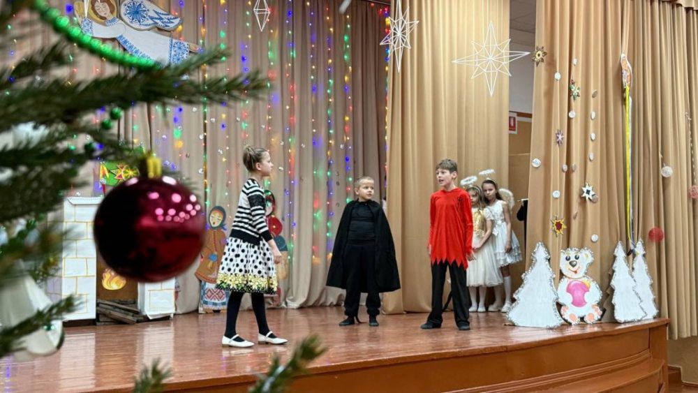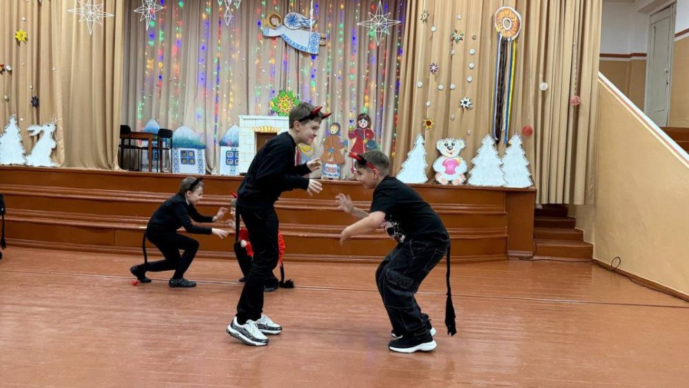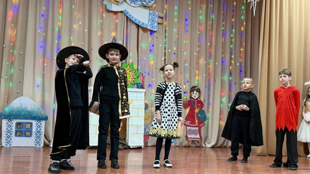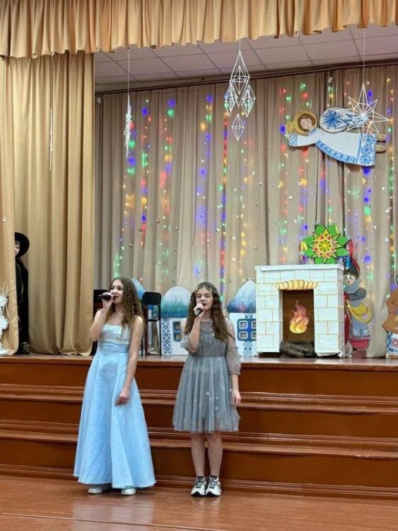 Зала була прикрашена яскравими декораціями: мерехтіли вогники та красувалася ошатна ялинка. Біля неї кружляли у танці маленькі сніжиночки — ніжні, граційні та усміхнені. Кожен номер був продуманий до деталей: барвисті костюми, чарівні музичні виступи, граційні танцювальні рухи та сценічні номери створювали справжню зимову казку.