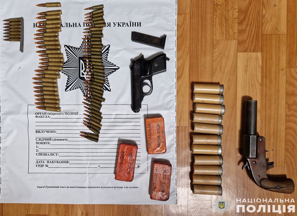 В ході санкціонованих обшуків поліцейські виявили та вилучили зброю, набої різних калібрів, боєприпаси та інші докази протиправної діяльності, а саме фрагменти металевого обладнання.