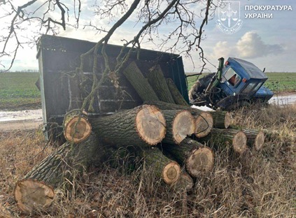 Дії підозрюваного кваліфіковано за ч. 4 ст. 246 Кримінального кодексу України – незаконна порубка дерев, що спричинила тяжкі наслідки. Йому загрожує до 7 років позбавлення волі.