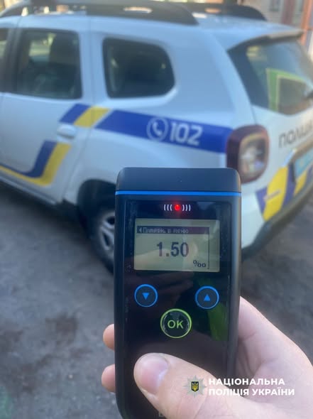Правоохоронці провели тест за допомогою приладу Drager. Апарат показав, що вміст алкоголю в крові чоловіка становив 1,50 проміле алкоголю, що в 7,5 разів перевищує допустиму норму. Крім того, під час перевірки документів виявилось, що чоловік керував автомобілем без посвідчення водія відповідної категорії.