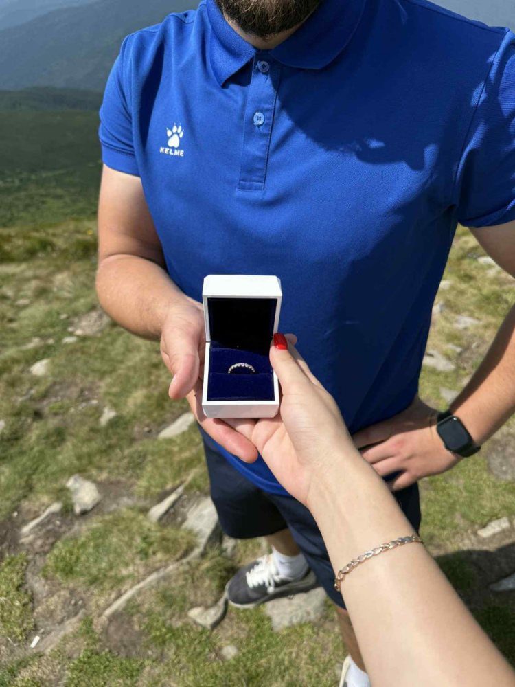 “Відпочинок у Карпатах був приурочений до дати — пів року, як ми разом. Я зрозумів що вона — моя людина, і я хочу провести з нею все своє життя. Освідчення на Говерлі стало для неї приємною несподіванкою. Вона була дуже здивована і водночас щаслива. Ідея зробити такий сюрприз зародилася у мене ще в Ніжині. Каблучку у Карпати я привіз із собою”, — розповів Дмитрій журналісту нашого видання.