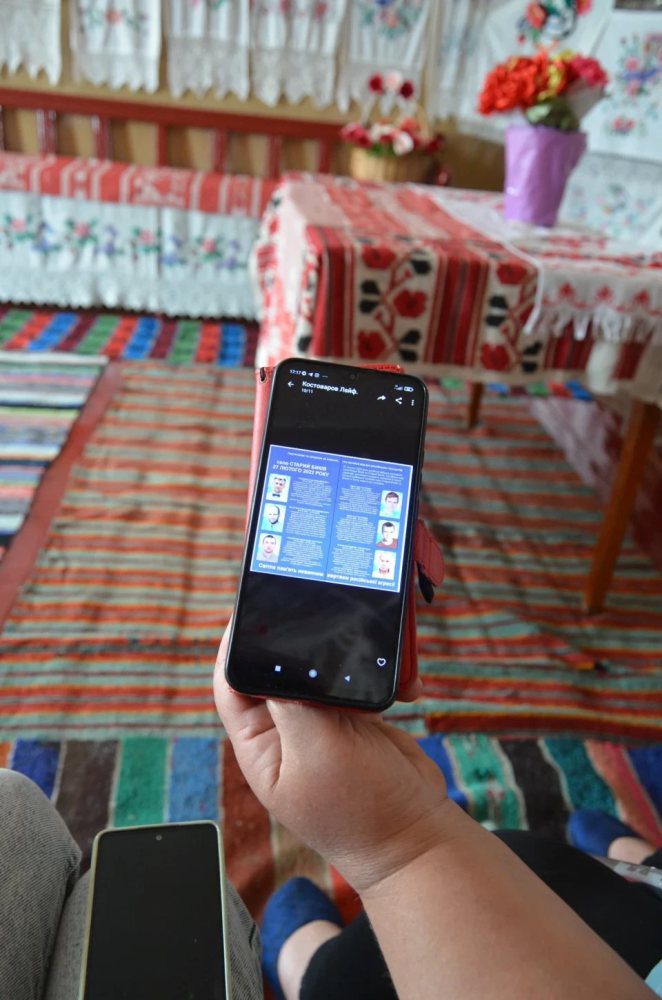 Вона й зараз стоїть, поросла травою. Мама убитого тут цивільного Богдана Гладкого – Вікторія Вовк – ділиться, що незабаром у селі мають встановити стенд з іменами та біографіями закатованих. Жінка демонструє макет майбутнього стенду в телефоні.
