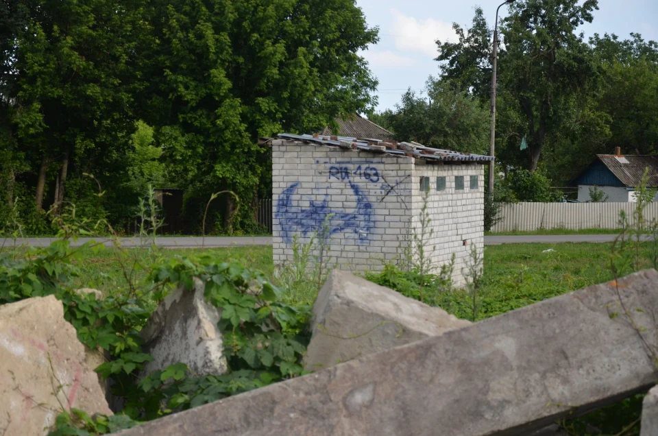 Зараз частина прибудови зруйнована. Поруч на ще одній будівлі зберігся малюнок. Оксана Мариненко звертає увагу: його залишили російські військові. Цивільний чоловік директорки місцевого дитячого садочка Наталії Єрмак теж був у полоні в цій катівні. Жінка в подробицях розповідає про пережите, про чоловіка, про його старі та нові хвороби після полону, важкий психологічний стан. А після кількох хвилин роздумів щодо місця катувань приходить до висновку: будівлю треба зберегти як нагадування про воєнні злочини росії.