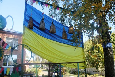 Національний прапор з мішечками щастя, дерево добра, розлогий сад, шпаківні, що дихають життям… Тут оживає кожен стовпчик і все стає схожим на казку. Жовті капелюхи яблунь, червоні ріжки оцтового дерева, вишукані жовто-зелені сукні струнких берізок, які ось-ось пустяться в танок – краса осінньої картини, від якої перехоплює подих. Здається, тут попрацював якийсь знаний художник-дизайнер і зробив цей маленький світ чарівним і загадковим. А ще цей світ, як стигле яблуко, налитий дзвінким дитячим сміхом.