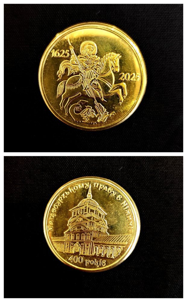 З нагоди відзначення 400-річчя надання Ніжину Магдебурзького права було випущено пам’ятну сувенірну монету. Автор макету – Аліна ОВДІЄНКО, наукова співробітниця Ніжинського краєзнавчого музею імені Івана Спаського.