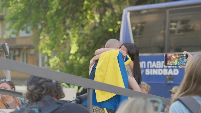«Калько! Міненко! Хтось чув, у якому автобусі?!» — знервований чоловік метушливо підбігає до одного з автобусів, довкола якого вже зібрався натовп із родичів і журналістів. За затемненим склом іще не розгледіти облич тих, кого кілька годин тому звільнили з російського полону.