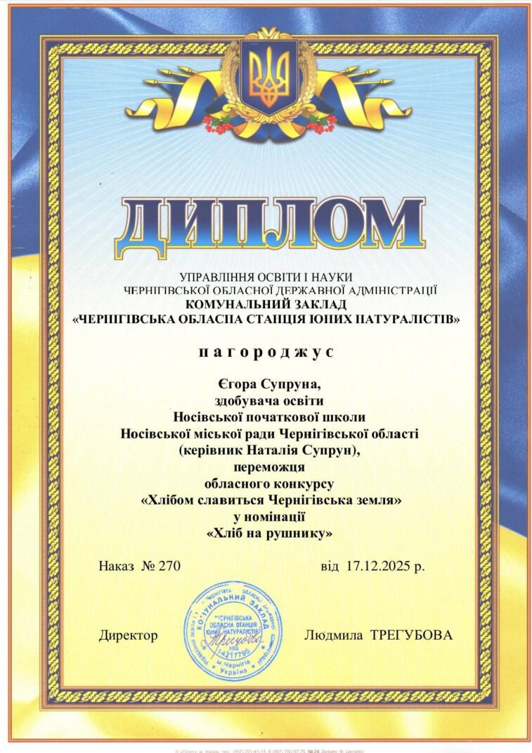 Щира гордість і радість для всієї шкільної спільноти! Учень 4-Б класу Єгор Супрун став переможцем обласного конкурсу «Хлібом славиться Чернігівська земля» у номінації «Хліб на рушнику».