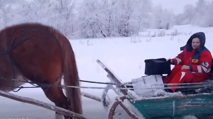 У селах Височанської громади Чернігівської області зима повернула людей у справжнє Середньовіччя. Через нерозчищені дороги автомобілі швидкої допомоги не можуть дістатися до пацієнтів, тож медиків із Борзни змушені доставляти… кіньми, запряженими в гринджоли.