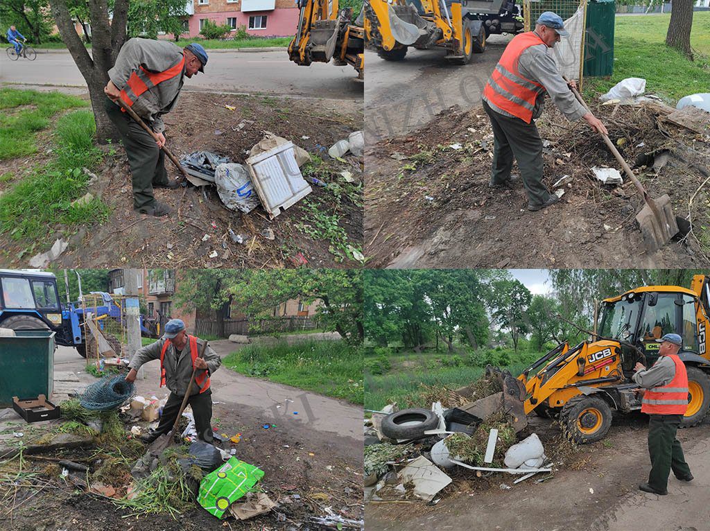 Кожного робочого ранку, а іноді й у вихідні, до міста виїжджає одна або дві бригади по ліквідації та зачищенню стихійних сміттєзвалищ практично біля кожного майданчика зі збору твердих побутових відходів. В склад кожної бригади входить трактор навантажувач або екскаватор, вантажний автотранспорт та працівники з благоустрою