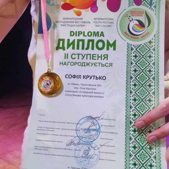 Молодший хор “Соняшник”, учасницею якого є Софійка Крутько, є переможцем чисельних конкурсів і фестивалів. Особисте досягнення талановитої дівчинки на сьогодні — Диплом II ступеня на міжнародному молодіжному фестивалі “Мистецькі барви” в номінації “Естрадний вокал” (викладач Ніна Крутько). І це, звісно, не межа. Є куди рухатися далі.