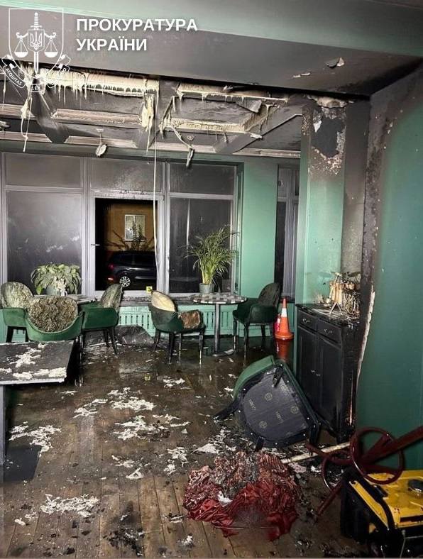 ▫️Уночі 17 жовтня 2025 року двоє чоловіків за вказівками спільника прибули до ресторану, розбили цеглиною фасадне вікно та кинули у приміщення три заздалегідь підготовлені ємності з горючою сумішшю.