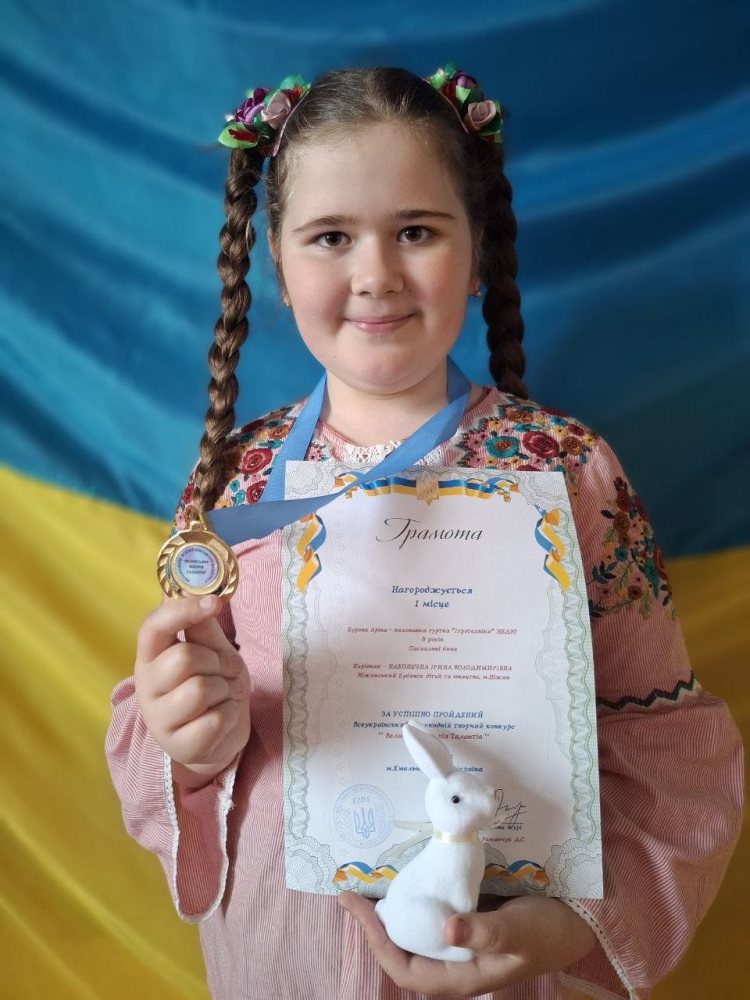 “Творчу натуру ми розгледіли в доньці в ранньому віці. Враховуючи її бажання співати, записали її в молодший хор “Соняшник” мистецької школи при Ніжинському фаховому коледжі культури і мистецтв імені Марії Заньковецької (керівник Марина Батрак, концертмейстер Наталія Остапенко). Заняття в хорі Аліна відвідує вже чотири роки“, – розповідає мама Аліни Марина.