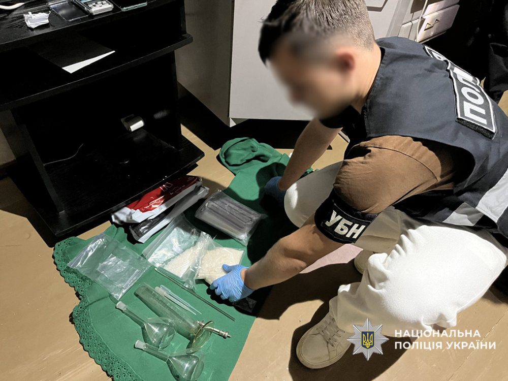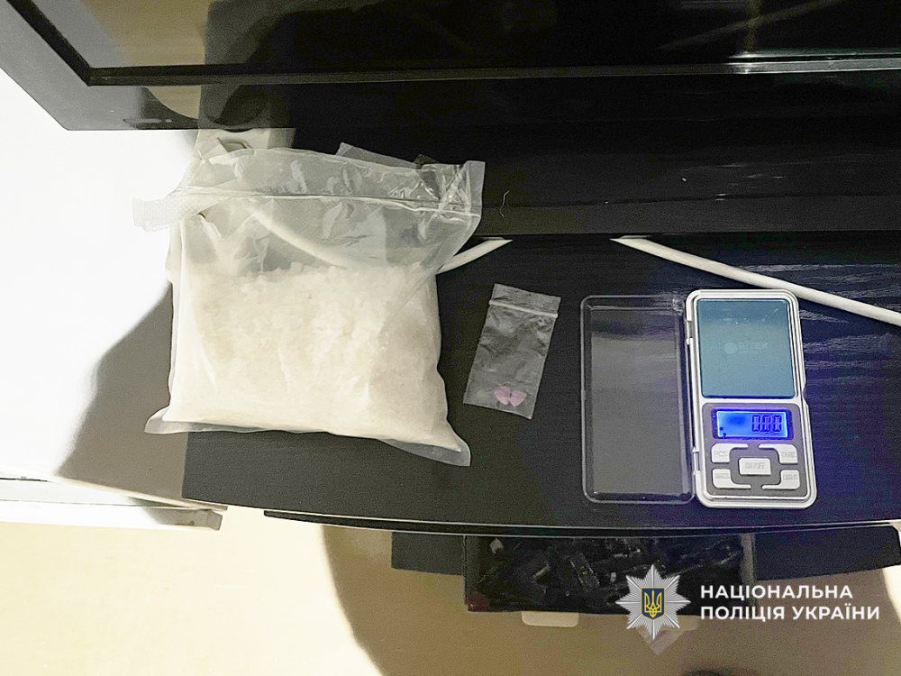 За місцем мешкання останнього правоохоронці провели санкціонований обшук в ході якого було виявлено та вилучено кристалічну речовину, що схожа на солі альфа-PVP, вагою близько 1 кг, пігулки екстезі, ємності з хімічними рідинами загальним об’ємом понад 10 л, а також засоби зважування та фасування наркотиків, інші речові докази протиправної діяльності. Вартість вилученого за цінами «чорно» ринку сягає понад півмільйона гривень.