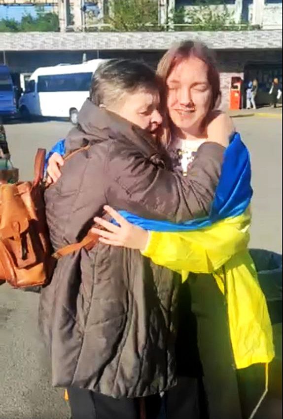 Виїзжали вночі машиною до Ростова. Їхали без речей, бо на блокпостах перевіряли все. Взяла лише шість срібних ложок і маленький ніж — пам’ять, частинку дому. Далі їх посадили в товарний потяг із Ростова до Петербурга, який перевозив тварин. «Але ми раділи навіть цьому, — посміхається Наталія. — Головне було — вирватися». З Петербурга дісталися Таллінна, де їх зустріли тепло, нагодували, зробили медогляд. Потім — Польща, і нарешті — рідна Україна.