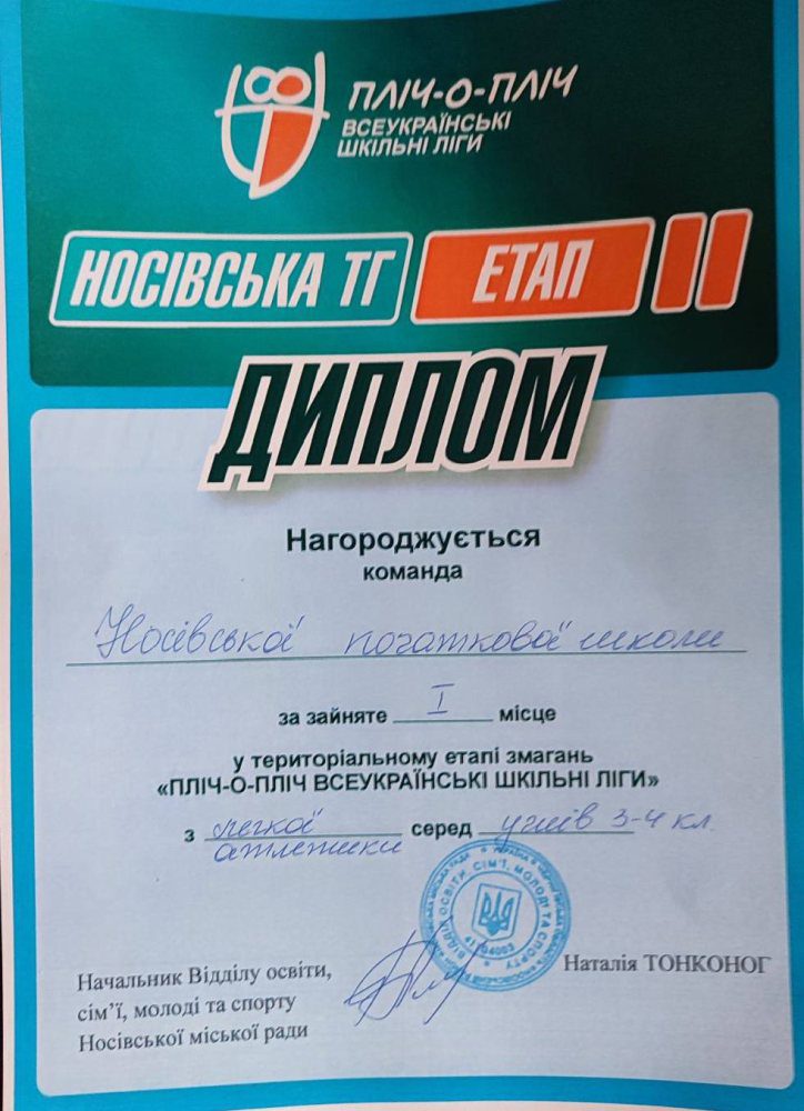 Учора Носівська шкільна команда здобула перемогу у ІІ (територіальному) етапі фізкультурно-оздоровчих заходів та змагань “Пліч-о-пліч всеукраїнські шкільні ліги” з легкої атлетики.