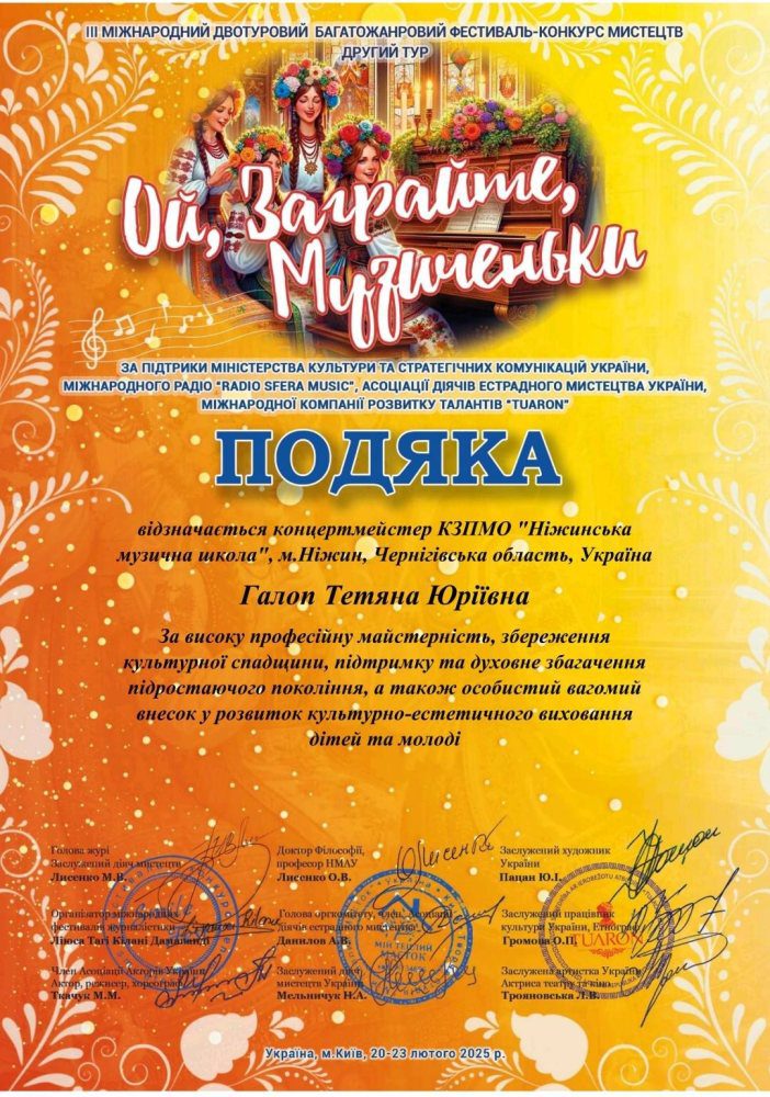 Концертмейстер: Галоп Тетяна Юріївна