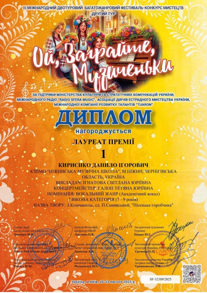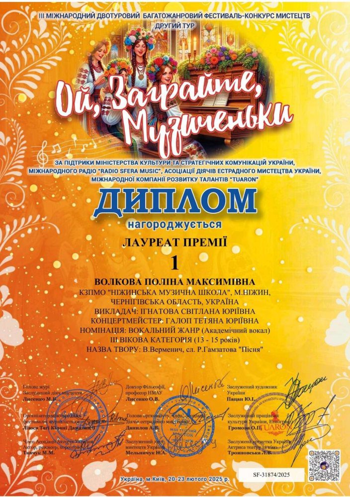Вітаємо переможців III Міжнародного фестивалю-конкурсу мистецтв “Ой, заграйте музиченьки”!
