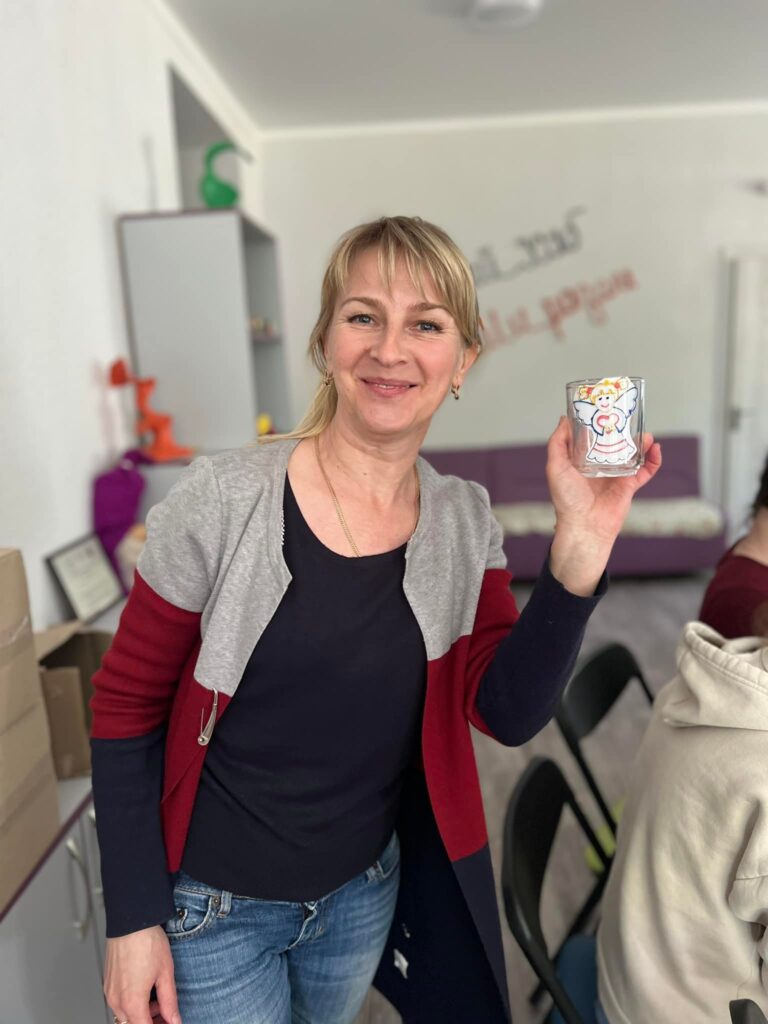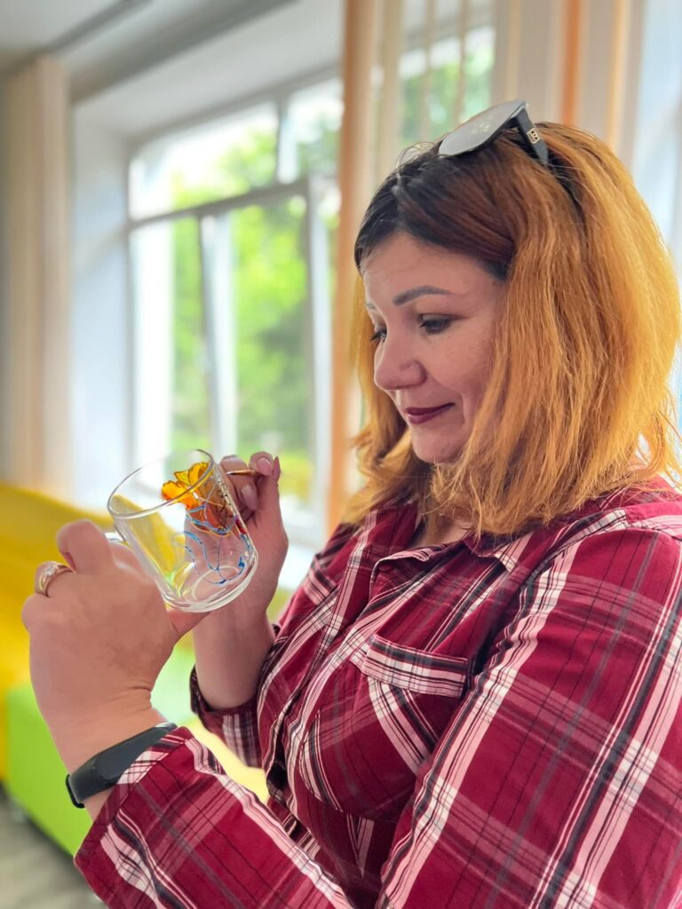 Щиро дякуємо Тетяні Кузик – художниці з Чернігова, яка люб’язно погодилася провести цю зустріч! Вона вимушено переїхала до Ніжина і ми скористалися нагодою навчитися розписувати чашки!