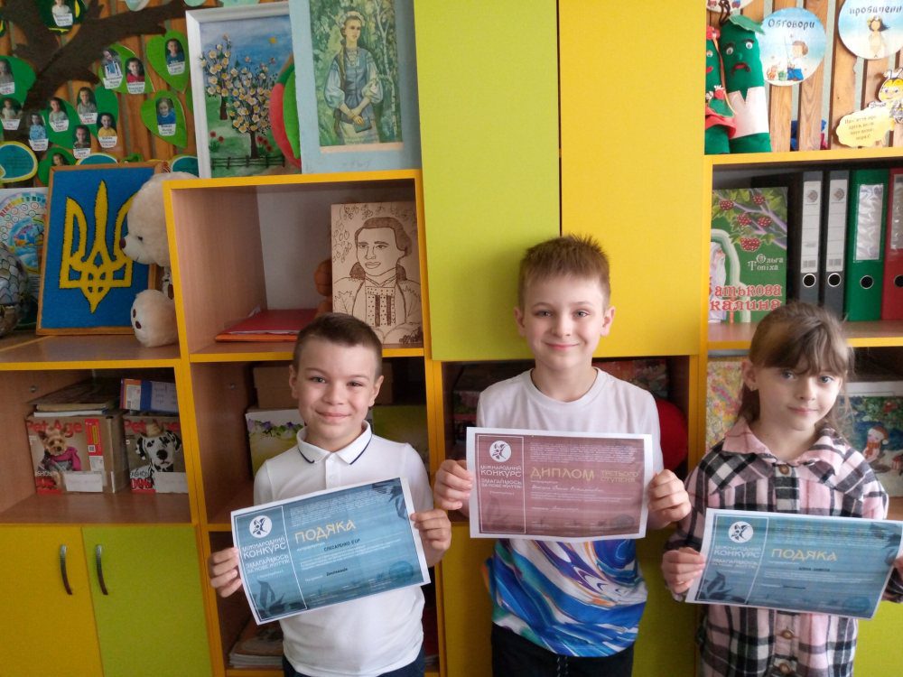 Шестикласники також не залишилися осторонь і вибороли перемогу: Аріна Тарасенко — І місце, Мілена Жимань — ІІІ місце, Марія Максименко — ІІІ місце, Олександр Кресан — лавреат конкурсу. Підготувала учнів до змагання Наталія Коленько.