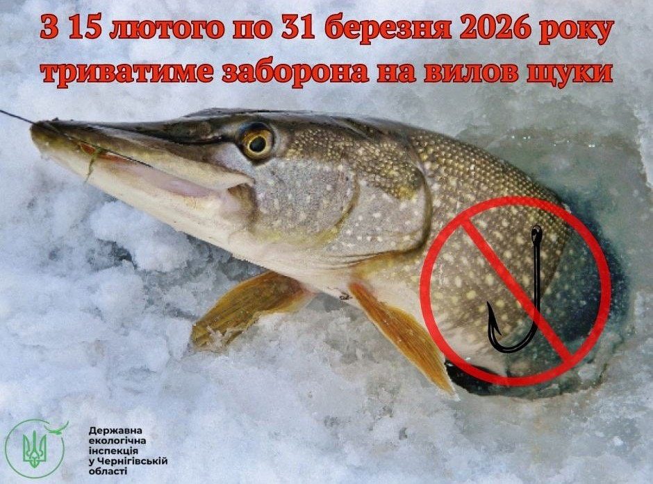 Державна екологічна інспекція у Чернігівській області нагадує любителям риболовлі, що з 15 лютого у всіх рибогосподарських водних об’єктах області діє щорічна заборона на вилов щуки. Це не формальність і не «зайва пересторога», а необхідний природоохоронний захід.
