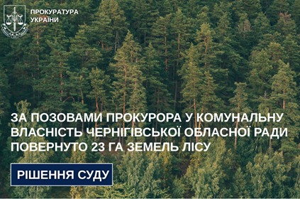 За таких обставин обласною прокуратурою подано позов до Господарського суду Чернігівської області з вимогою повернення ділянки належному розпоряднику – Чернігівськой обласній раді та в постійне користування ДП «Чернігіврайагролісгосп».