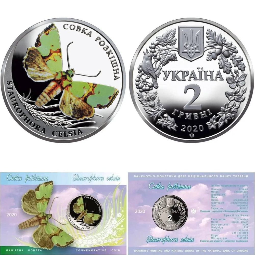 1. Розкішна монета: Нацбанк України у 2020 році випустив срібні пам’ятні монети номіналом 2 грн і 10 грн присвячені Совці розкішній Staurophoracelsia – рідкісному зникаючому виду комах. Це допомогло звернути увагу на цей вид метеликів, що занесені в Червону книгу України.
