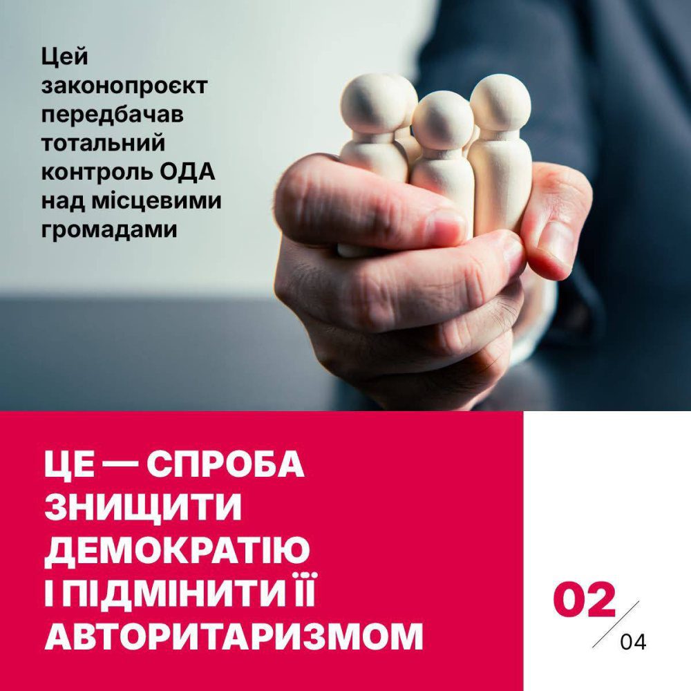 «Кожен депутат, який сьогодні натисне кнопку «за» за цей законопроєкт, натискає кнопку за ліквідацію місцевого самоврядування в Україні, а також за закриття нашого шляху в ЄС», – наголосила Юлія Тимошенко перед голосуванням, нагадавши, що проти нього виступили усі асоціації місцевого самоврядування.